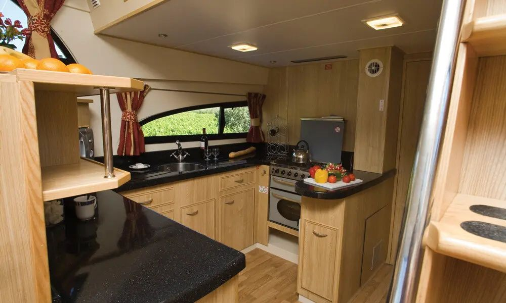 Das Boot verfügt über einen gemütlichen Wohnraum mit modern ausgestatteter Küche. Radio mit CD und MP3, USB, LCD Bildschirm mit DVD Spieler, Heizung